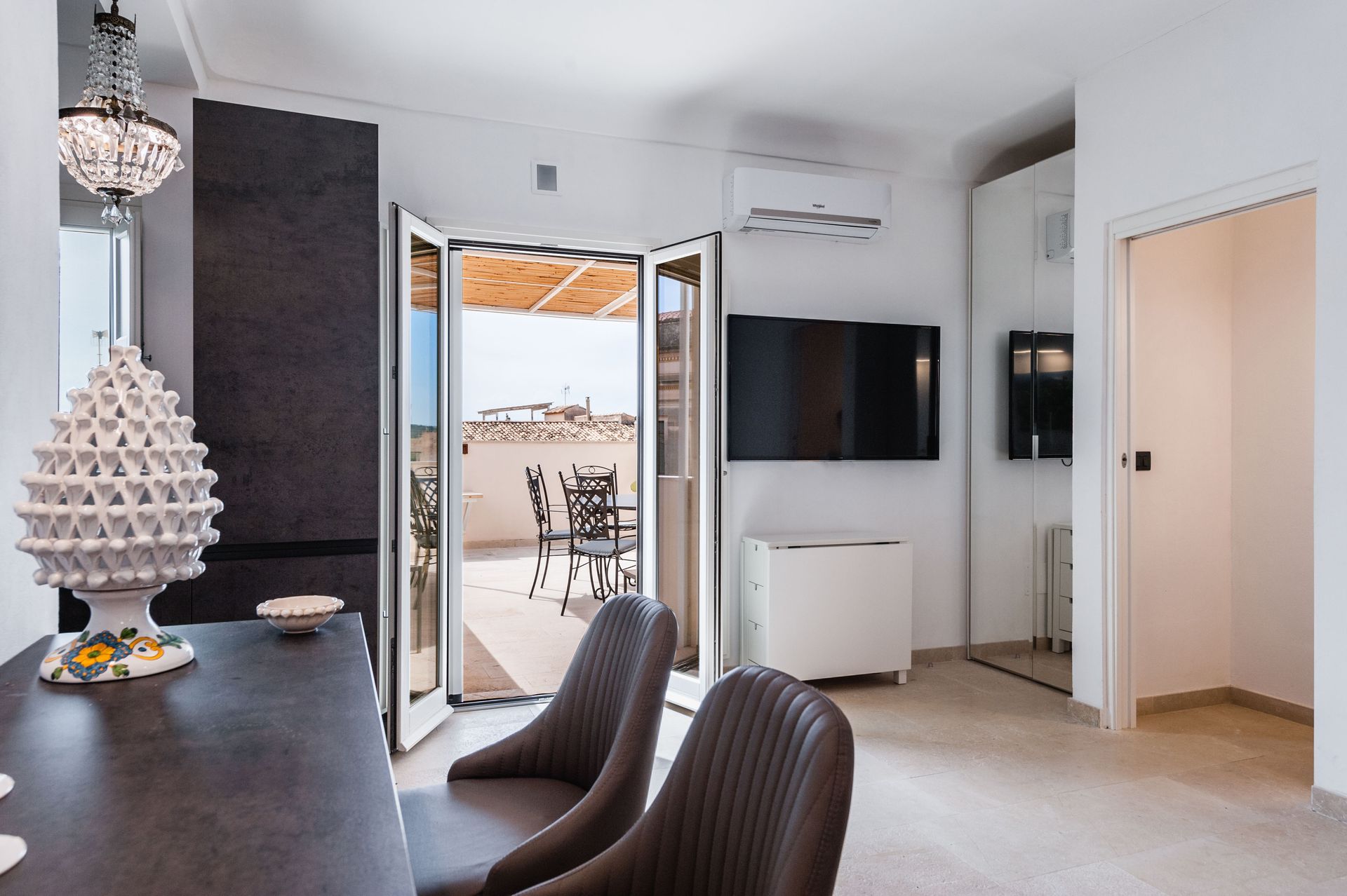 Imaginez un appartement baigné de lumière, sans vis-à-vis, où chaque détail est pensé pour votre confort. Depuis la terrasse plein sud, un jacuzzi vous invite à la détente face aux toits baroques de Noto et à la campagne environnante.